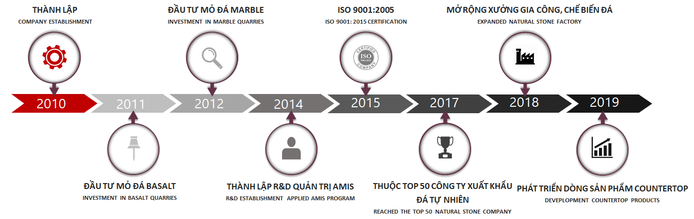 Sản phẩm chính của công ty là đá tự nhiên ốp lát, bao gồm các loại: Granite, Basalt, Sandstone, Limestone, Bluestone, Lavastone,... được khai thác, chế biến tại Việt Nam để cung cấp cho thị trường trong nước và xuất khẩu.